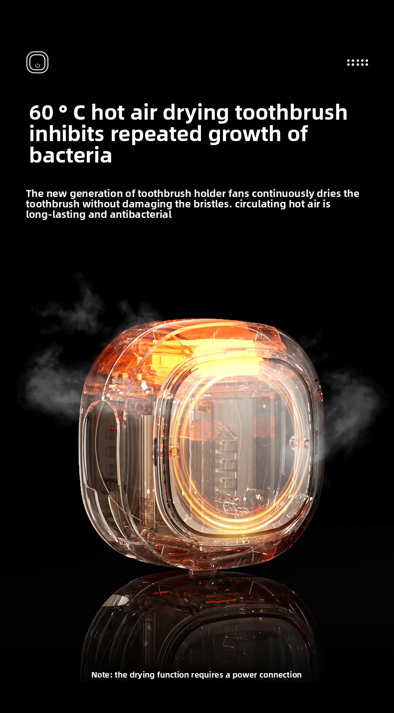Fast Drying: Built-in drying function to keep toothbrushes dry and hygienic.